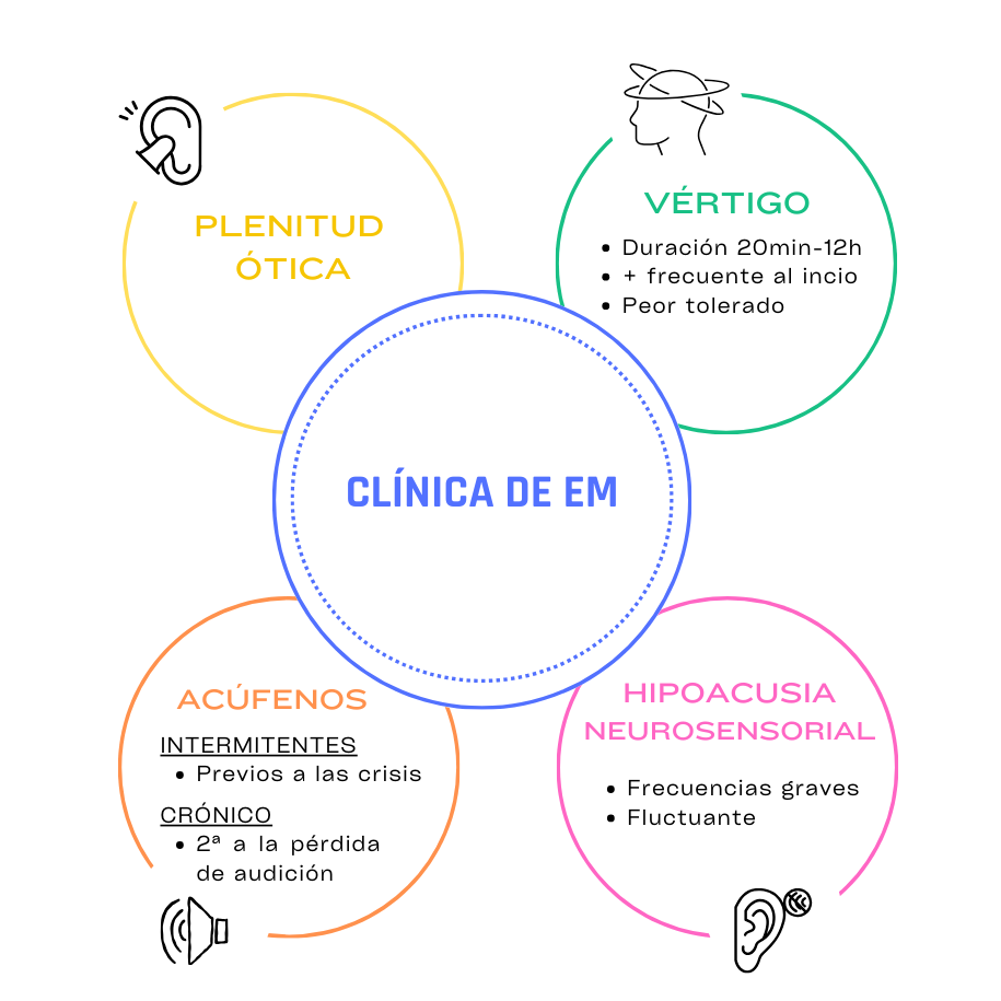 El diagnóstico de la EM es clínico y audiométrico. Se basa en unos criterios de la Sociedad de Bárány. Pruebas como el VNG y el vHIT nos permiten realizar un adecuado seguimiento y confirmar el diagnóstico clínico.